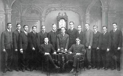 The Order has a private group portrait taken for every new cohort of fifteen. It is always posed in the same manner, showing human bones and a grandfather clock at 8 p.m.Skull and Bones is distinctly an outward-viewing secret society. It has a view outside Yale University because it is a senior society.