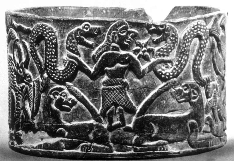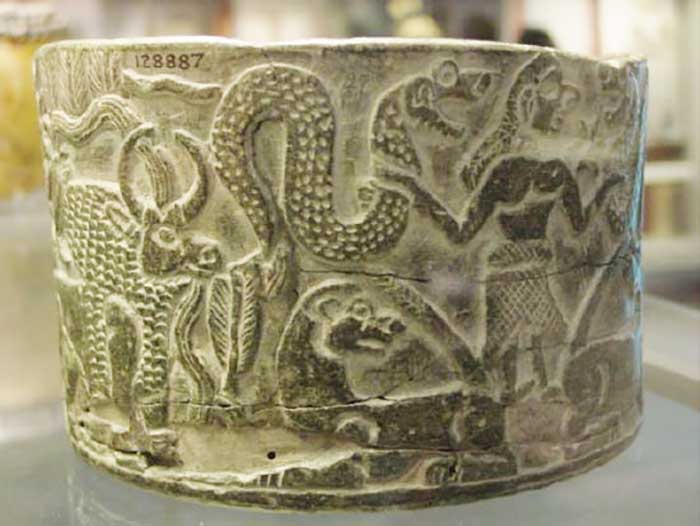 Representations of two intertwined serpents are common in Sumerian art and Neo-Sumerian artwork and still appear sporadically on cylinder seals and amulets until as late as the thirteenth century BC.