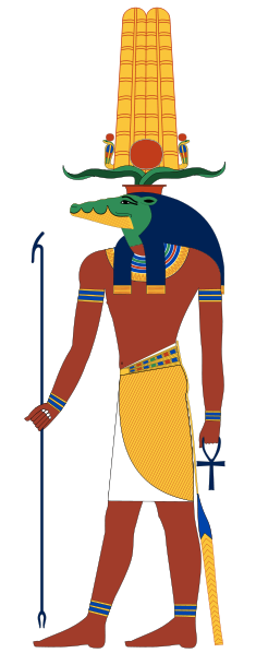The god Sobek, which was depicted as a crocodile or a man with the head of a crocodile was a powerful and frightening deity; in some Egyptian creation myths, it was Sobek who first came out of the waters of chaos to create the world. As a creator god, he was occasionally linked with the sun god Ra.