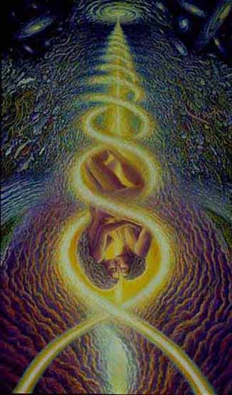 When it spirals into physical consciousness, through the DNA helix, it becomes bipolar, male-female, one aspect of the soul remains above while the other is below. Within all human DNA, is an encoded message, a quest, mission, Return to Oneness with your Soul.