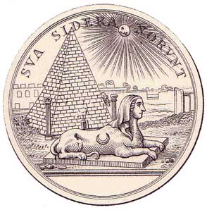The sphinx image also has been adopted into Masonic architecture. Among the Egyptians, sphinxes were placed at the entrance of the temple to guard the mysteries, by warning those who penetrated within, that they should conceal a knowledge of them from the uninitiated. Champollion says that the sphinx became successively the symbol of each of the gods, by which Portal suggests that the priests intended to express the idea that all the gods were hidden from the people, and that the knowledge of them, guarded in the sanctuaries, was revealed to the initiates only.