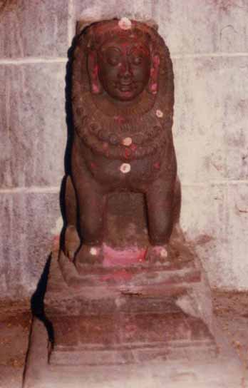 In South India, the "sphinx" is known as purushamriga (Sanskrit) or purushamirukam (Tamil), meaning "man-beast". It is found depicted in sculptural art in temples and palaces where it serves an apotropaic purpose, just as the "sphinxes" in other parts of the ancient world. It is said by the tradition, to take away the sins of the devotees when they enter a temple and to ward off evil in general. It is therefore often found in a strategic position on the gopuram or temple gateway, or near the entrance of the Sanctum Sanctorum.