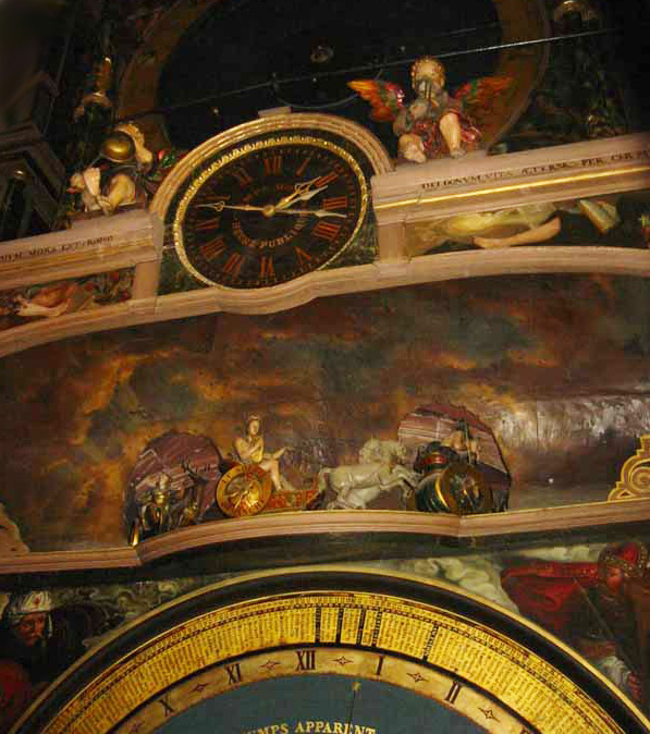 As with other older Europe cities, Strasbourg speaks to the soul of ancient times and programs - which generally do not interest me ... yet something was calling to me - something to be discovered. As we walked through the cathedral, Pat remembered a large clock in the back. It wasn't difficult to find as most of the people visiting were also drawn to it. As we reached the massive clock - there it was - a timepiece in blue and gold - designed in many sections feminine me of the alchemy wheel on the cover of my book ...