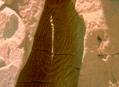 Since the groove is parallel to the moon's shadow, it does seem likely that Chacoan astronomers were aware of the major and minor standstills of the moon. The three-slab site is unique in the ancient world in marking on one surface the significant cycles of both the sun and moon.