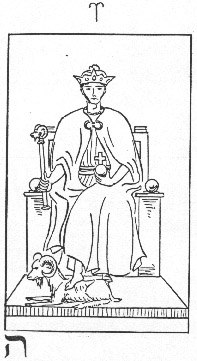 The Emperor card rules over the conscious elements set into the material world. The Emperor is an older, wiser version of the Magician, his knowledge at handling affairs in a systematic way has given him the seat on the thrown. He is holding the world in his left hand and a T square in his right. The world is represented in numerology by the number 4 which is also this cards vibration. The T square is used in building and design, for mathematics and planning. This card represent the fashion in which things are done, a system to bringing things forth and manifest. Starting with one, two, three, then finally four, which is the building number, putting all things together.