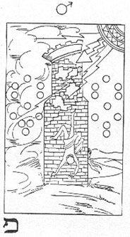 This card is symbolic of the jolt of actual understanding. Lightning, feared by the primitive is the opposite to an enlightened one, using its power for his own uses. So with this, we can look at the card and understand that the man and woman, conscious and subconscious are knocked from the top of the tower by the light of true knowledge or understanding. The crown is symbolic of the mind or the place of power and thought.
