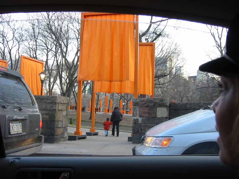 The pressing question at that moment was, where does one park their car in a city that has few parking spaces and parking garages that cost $30.00 US and were filled anyway! As most of you know, parking is never a problem for those who are 'connected' or can manifest. It's sort of Metaphysics 101. It was around 3 pm, the middle of the afternoon and the city was flooded with people, downtown at Chinatown and at Central Park to experience The Gates.