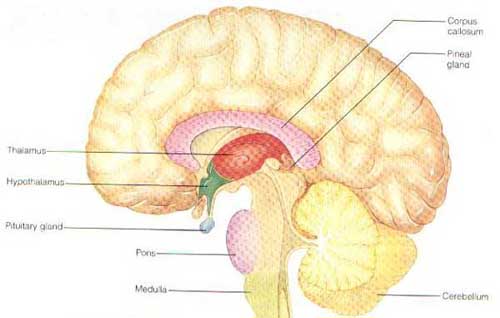 The third eye controls the various bio-rhythms of the body. It works in harmony with the hypothalamus gland which directs the body's thirst, hunger, sexual desire and the biological clock that determines our aging process. When it "awakens", one feels a pressure at the base of the brain.