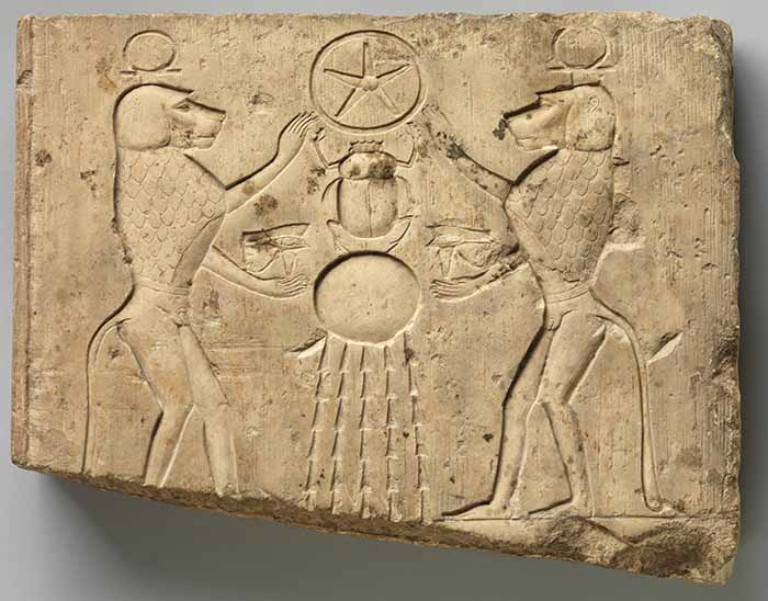 Later, as a goddess in other traditions of the Egyptian pantheon, where most goddesses were paired with a male aspect, her masculine counterpart was Thoth and their attributes are the same.
