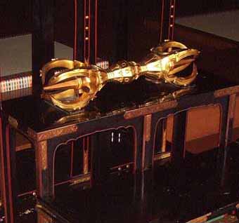 The peculiar form of the vajra, which is quite unlike the usual type of lightning, is fully explicable as a manifestation of the visible world axis during one of its most complex phases. As the Indologist, Govinda, has explained, the little sphere in the centre represented the 'seed' or 'germ' from which the universe was thought to have arisen and the two Ôlotus blossomsÕ at the opposite ends symbolized the poles of the universe connected by the central axis mundi.