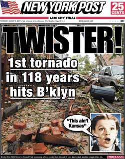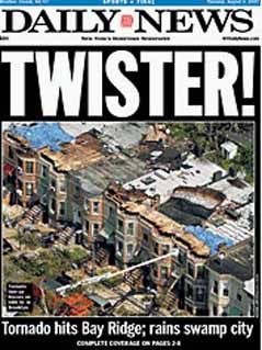 I live in Bay Ridge, the scene of an unexplained and unexpected tornado that touched down here today. Prior to waking up this morning, I saw flashes of lightning and heard rolls of thunder that stirred me to wakefulness.