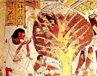 Scenes and inscriptions clearly show a link between the tree-goddess, the symbol of renewal, and the dead in the form of the avian Ba, for as a bird, the soul of the dead was attracted to, and nourished by the tree.