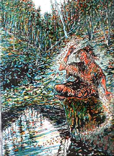 This outlandish, yet remarkable being in human form, learns, grows in understanding, changes, and at a certain point in his adventuresome blunders, is transformed. Until that moment, however, Trickster keeps changing shape and experimenting with a thousand identities, including shifts in sex, in a seemingly never-ending search for himself.