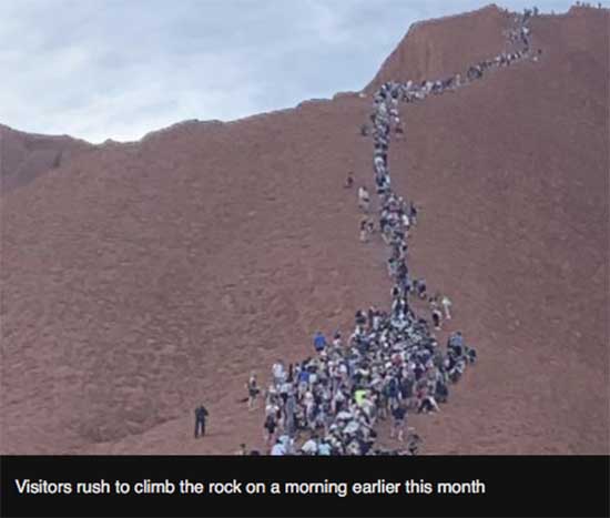 For decades, hundreds of thousands of visitors to Australia's desert centre have trekked up Uluru, the ancient red monolith formerly known as Ayers Rock. Starting Saturday, the climb will be banned. Uluru is a sacred site for the local indigenous custodians, the Anangu people, who have long asked tourists not to go up.