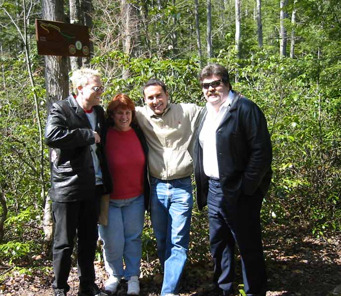 Ron, Pat and George walked a short distance away from Trae and I, to allow us time alone. When we rejoined them, they reported that that had heard funny noises above the trees as Trae and I touched the tree and stone. Ron said that the noises sounded like a rusty gate or door, or rusty old weather vane changing direction, or large rusty gears turning. They couldn't place the location of the noise because at one point it was in front of them, then it was ahead of them, then it was above them. It was definitely not a bird nor an animal.