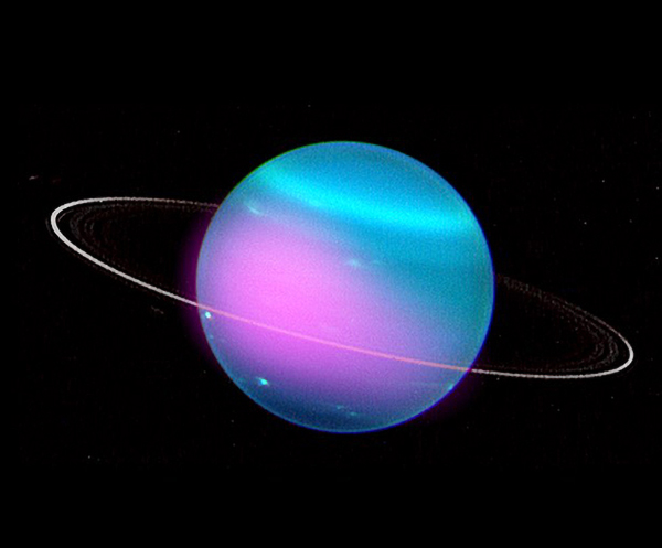 The first observation revealed a clear detection of X-rays, and the second revealed a possible flare of X-rays on the ice giant, a planet mainly composed of elements heavier than hydrogen and helium. In the new study, researchers used Chandra observations taken in Uranus in 2002 and then again in 2017. They saw a clear detection of X-rays from the first observation, just analyzed recently, and a possible flare of X-rays in those obtained fifteen years later. The main graphic shows a Chandra X-ray image of Uranus from 2002 (in pink) superimposed on an optical image from the Keck-I Telescope obtained in a separate study in 2004. The latter shows the planet at approximately the same orientation as it was during the 2002 Chandra observations.