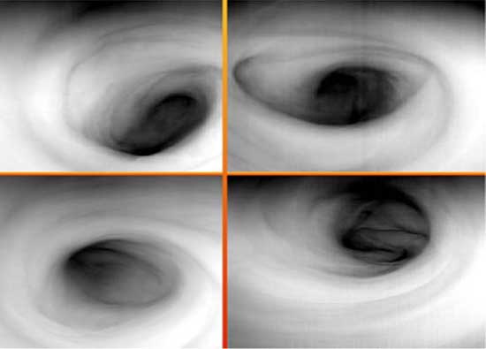 What's happening over the South Pole of Venus? To find out, scientists have been studying images taken by the robotic Venus Express spacecraft when it passes over the lower spin axis of Earth's overheated twin. Surprisingly, recent images from Venus Express do not confirm previous sightings of a double storm system there, but rather found a single unusual swirling cloud vortex. In the above recently released image sequence taken in infrared light and digitally compressed, darker areas correspond to higher temperatures and hence lower regions of Venus' atmosphere. Also illuminating are recently released movies, which show similarities between Venus' southern vortex and the vortex that swirls over the South Pole of Saturn. Understanding the peculiar dynamics of why, at times, two eddies appear, while at other times a single peculiar eddy appears, may give insight into how hurricanes evolve on Earth