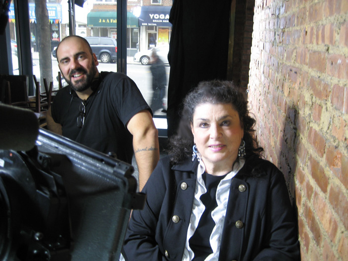 I spend most of the day taping for the History Channel at the Pearl Room in Brooklyn. I started the day, as always, with a quick glimpse at the news - the scene opening with a close-up of a street sign that read: Pearl Street in lower Manhattan. The day would indeed be about "Pearl" - the image above looking like her ghost was walking by. (I look like I'm in a daze, and it really doesn't look like me, but that was the only photo I took.)