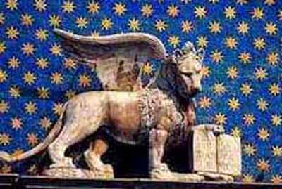 The motif of a winged animal with a human head is common to the near east, first recorded in Ebla, around 3000 BCE. The first distinct lamassu motif appeared in Assyria during the reign of Tilgath Pilser. In a much later period, a winged lion appeared on the flag of the Republic of Venice; however, this refers to Saint Mark the Evangelist, the patron saint of Venice. A winged bull with the head of a bearded man appears on the logo of United States Forces - Iraq in reference to Iraq's ancient past.