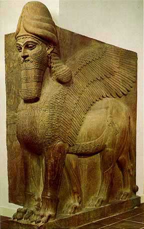 In art, lamassu were depicted as hybrids, winged bulls or lions with the head of a human male. There are still surviving figures of lamassu in bas-relief and some statues in museums, most notably in the British Museum, Musˇe du Louvre, National Museum of Iraq, Metropolitan Museum of Art and the Oriental Institute, Chicago. They are generally attributed to the ancient Assyrians. The lamassu is at the opening of the city, so that everyone who enters sees it. From the front it appears to be standing and from the side walking. This was intentionally done to make it seem powerful. The lamassu in real life is very tall. In this case the lamassu is being used as a symbol of power.