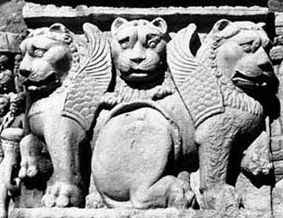 The Gate of Xerxes at Perespolis shows that the Winged Lion was placed at the corner of one entrance. When you stood in front of the gate you saw a lion with four legs and when you were inside the gate you saw a lion with four legs.
