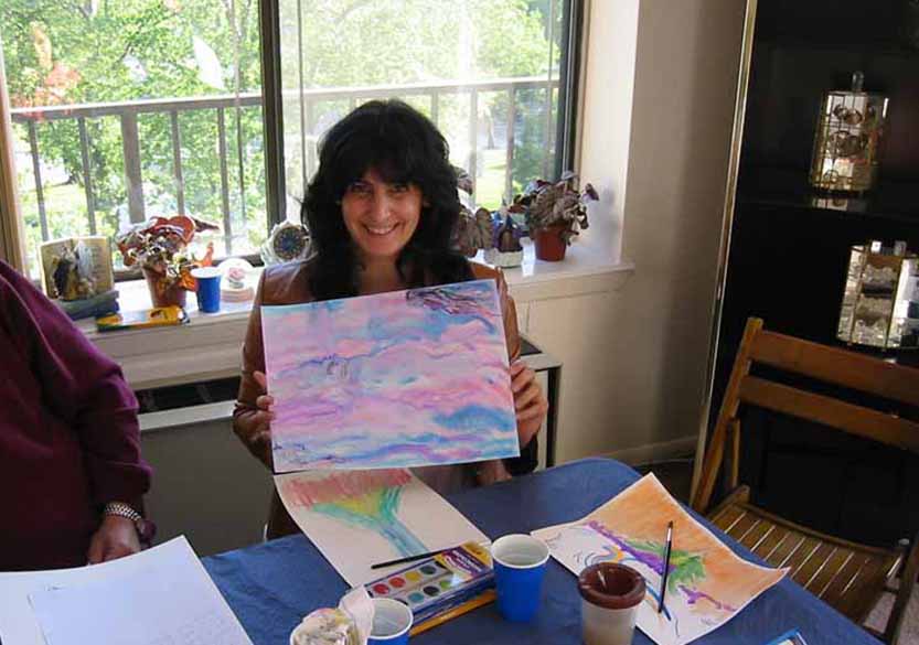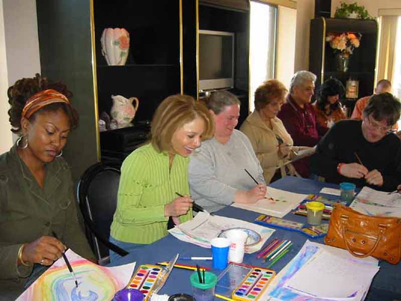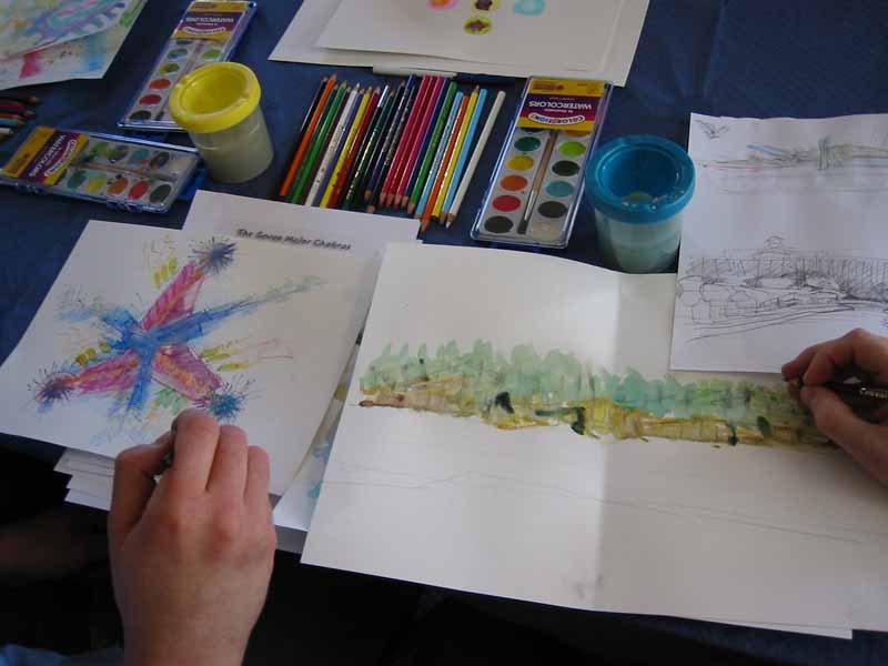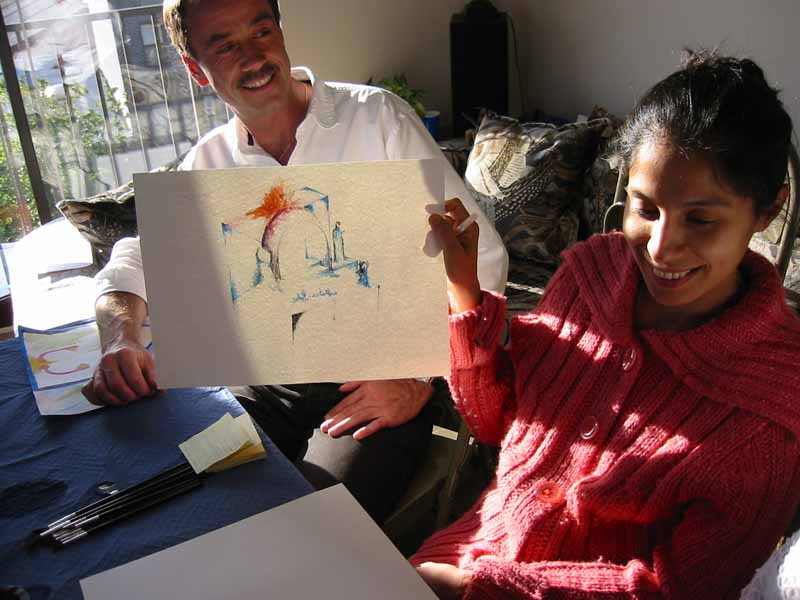 Students completed one or more water colored paintings, as guided. Some students laughed and spoke to others as they did their work, while others were more reflective. There was no right or wrong as the images began to take shape on each person's paper.