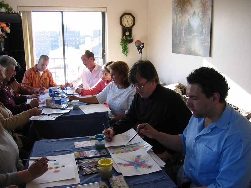 The last part of the workshop had to do with creative design coming from the imagination and soul of each students, who painted one or more pictures. I discussed automatic writing and art before we started to paint. If there was more time, this lesson could have been taken to many other levels ... alas the hour grew late.
