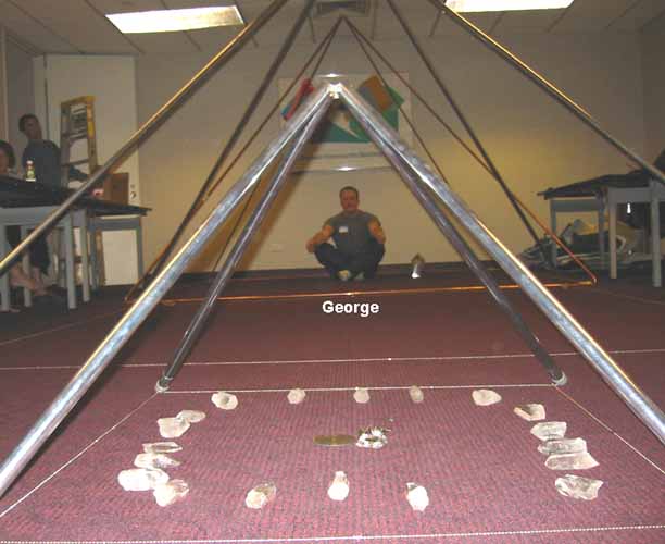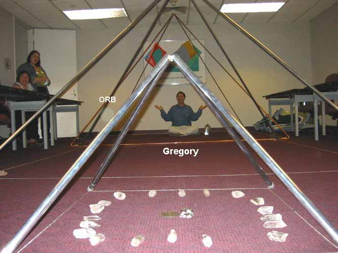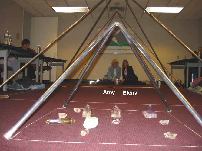 Gregory arranged the space at the American Conference Center. He contributed the 10-foot copper pyramid and many of the large crystals for the class. He showed me how easy it is to build a copper pyramid, the supplies available at a Home Depot, 8 copper pipes of equal length and copper elbow joints. This is well worth doing and easy to assemble and take apart. Gregory owns the large Atlantean Crystal. It is two crystals fused together then carved, never saw anything like it before.