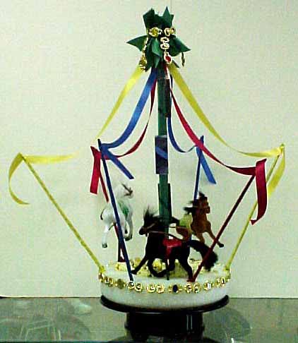 The DNA strands looked like party streamers or ribbons, swooping slightly and meeting at the top of the column. It became a carousel, or merry-go-round. Lots of symbology here ... The carousel is one of my symbols for the Wheel of Karma that goes round and round. We cannot get off until the ride stops. The ribbons represent karmic ribbons, or karmic ties that keep us bound on the merry-go-round or carousel.