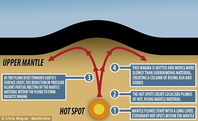 Researchers found a column of hot volcanic ash known as a magma 'plume' beneath the volcano, and they believe it stretches all the way from Mexico. Experts suggest the plume could be the source of the heat that drives so much of the volcano's surface activity, such as its world-famous bubbling springs. The news follows a spate of four mini-tremors in the area last week that raised fears Yellowstone's supervolcano is about to blow.
