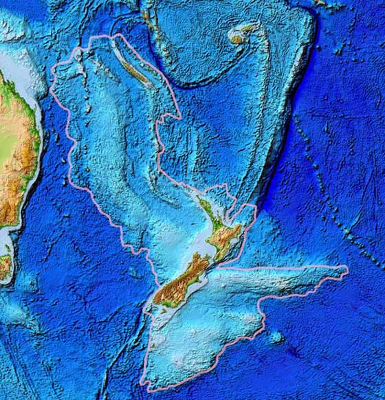 Zealandia also known as the New Zealand continent or Tasmantis is an almost entirely submerged mass of continental crust that subsided after breaking away from Gondwanaland 83-79 million years ago. It has variously been described as a continental fragment, a microcontinent, a submerged continent, and a continent. The name and concept for Zealandia was proposed by Bruce Luyendyk in 1995.